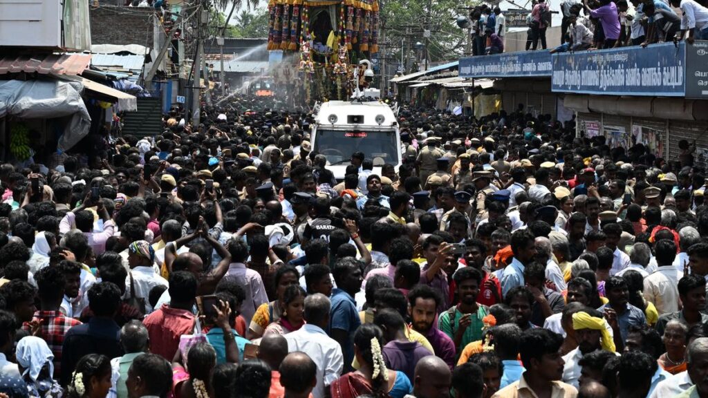 The city of the temple of Samayapuram, near Touchi, was soaked in religious fervor on Tuesday when the devotees in large quantities took the decorated car from the temple of Aulmigu Mariamman as part of the Chithirai festival.